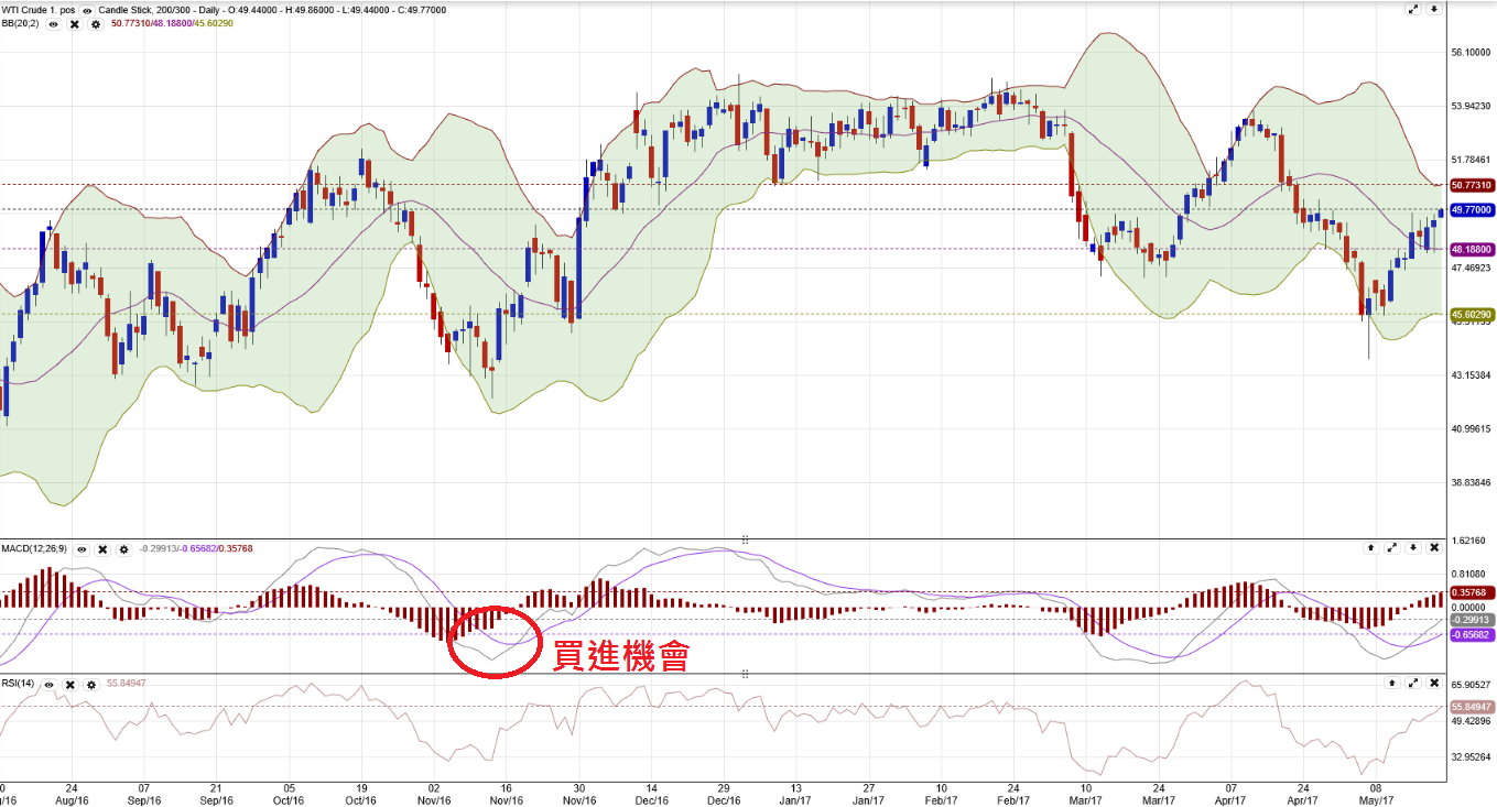 - %R 當 50% 稱為中軸線,衝上 50% 以上,價格開始轉強可以買入。同理由超買區跌破中軸線,價格便開始轉弱,應該賣出。