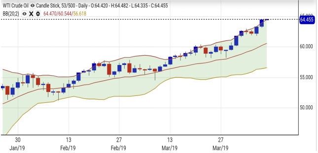 【原油】下行支持位64美元, 上方阻力位65美元