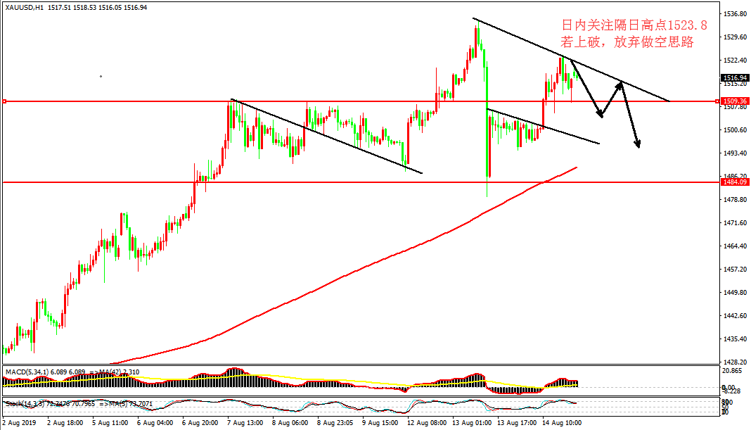 黄金价格走势图:黄金小时图