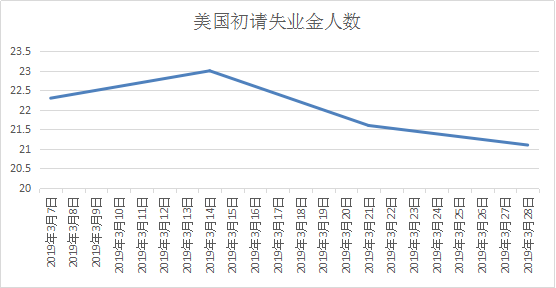 首先我们看看美国3月份公布的美国初请失业金人数如图所示: