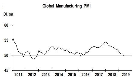 自去年开始全球经济出现明显下滑,部分国家几乎临近崩盘,日本央行超宽松多年无果,欧洲央行无奈之下考虑第三轮大宽松,全球经济预期一再下调,截止目前全球制造业PMI指数已经跌至50之下。相对强势的美国也同样出现疲态,自去年十月以来美国GDP增速从4.2%下滑至2%,制造业PMI指数跌至50枯荣线附近,也预示着未来半年美国经济增速还将持续下滑。